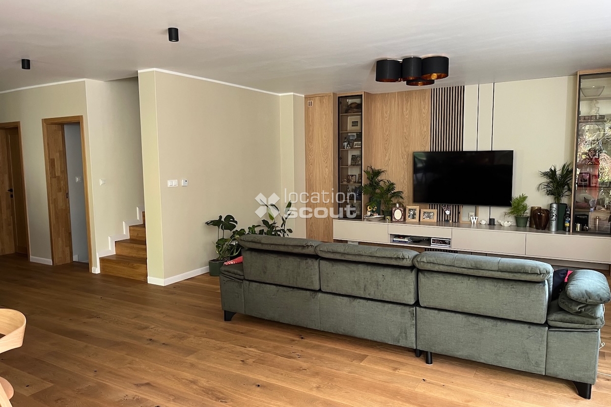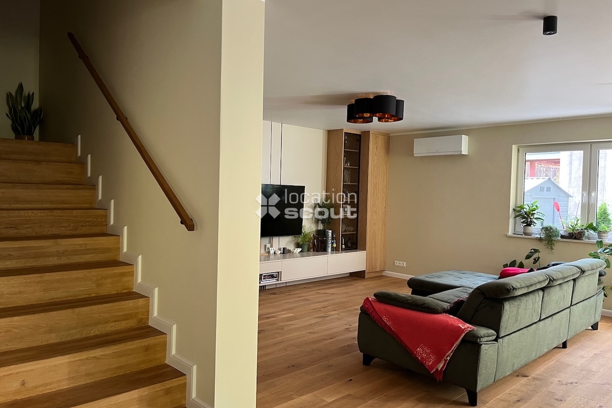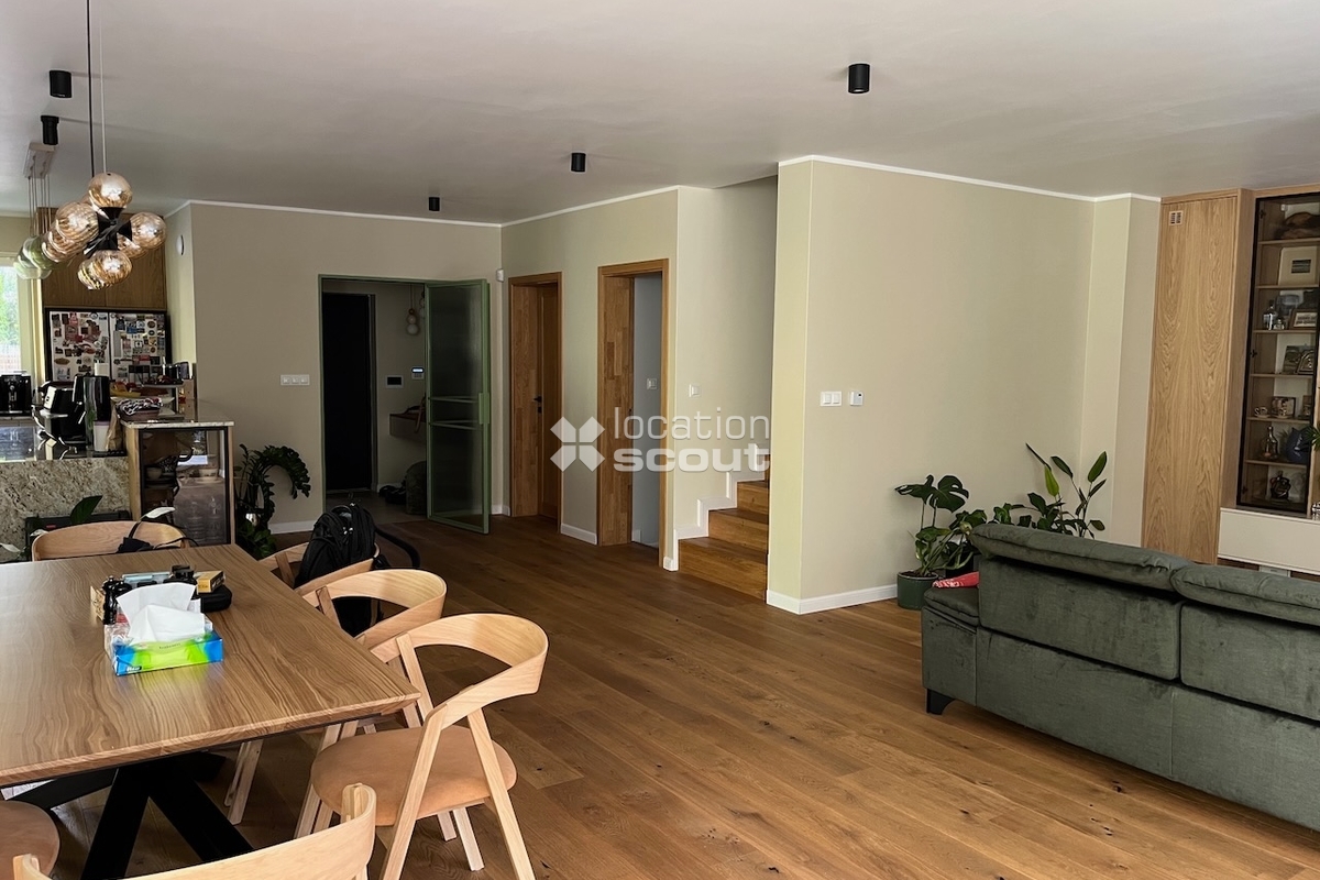 Nowoczesny dom z przestronnym salonem, kolorowe ściany