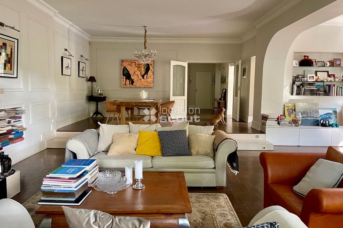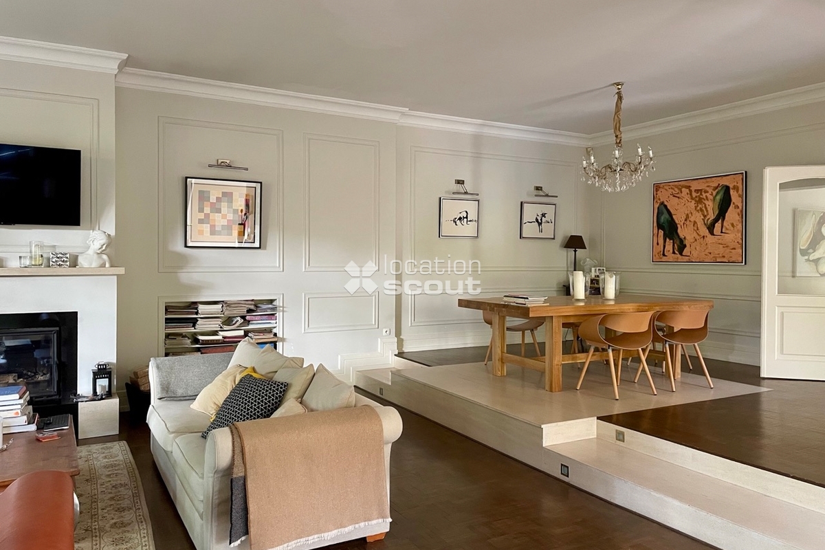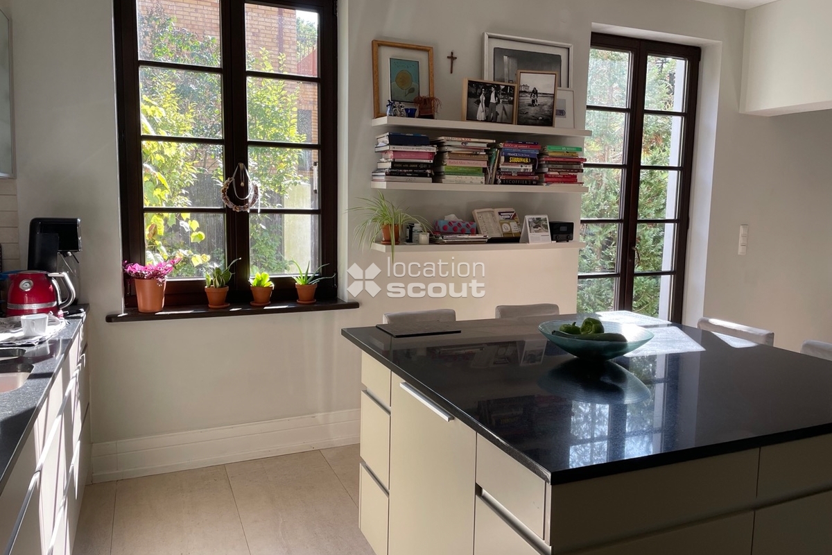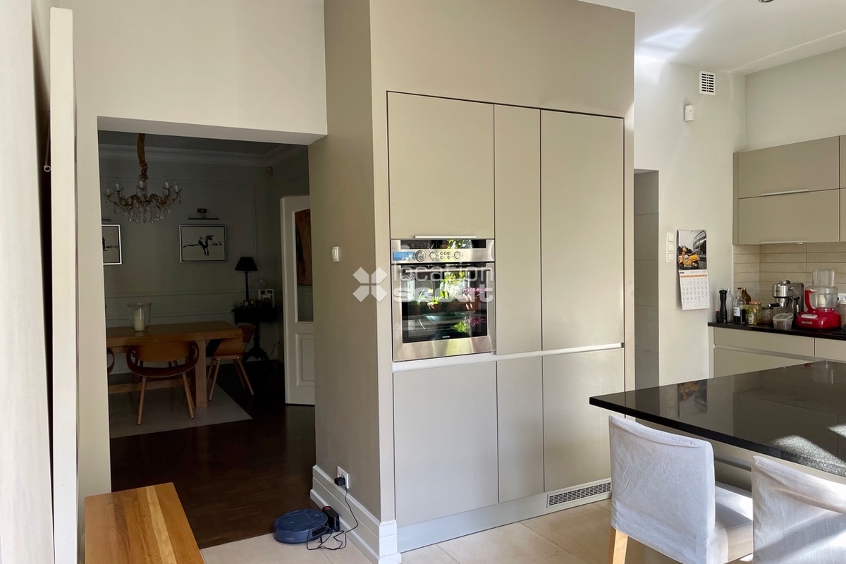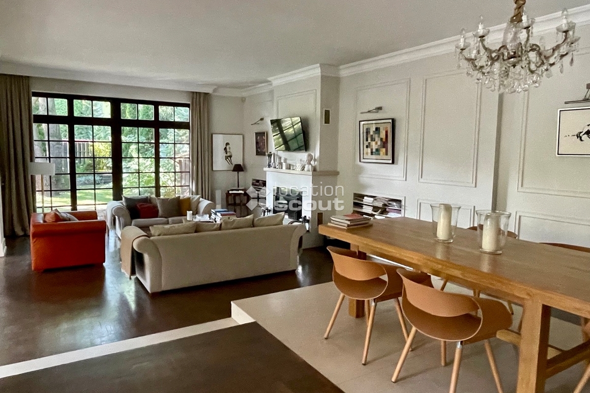 Rezydencja na obrzeżach Warszawy w stylu anglosaskim. Salon połączony z jadalnią, przestronny hol wejściowy.