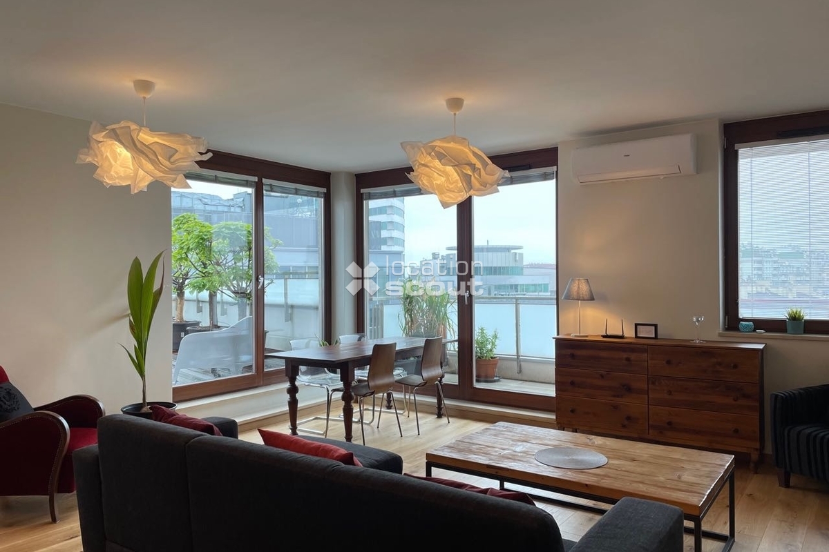 Nowoczesne mieszkanie z widokiem na centrum. Taras i balkon (80 m 2) wzdłuż całego mieszkania.