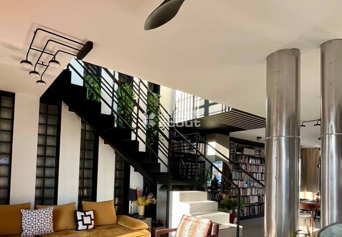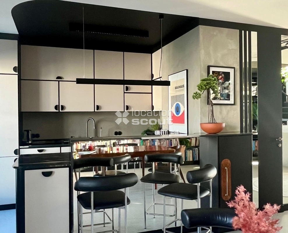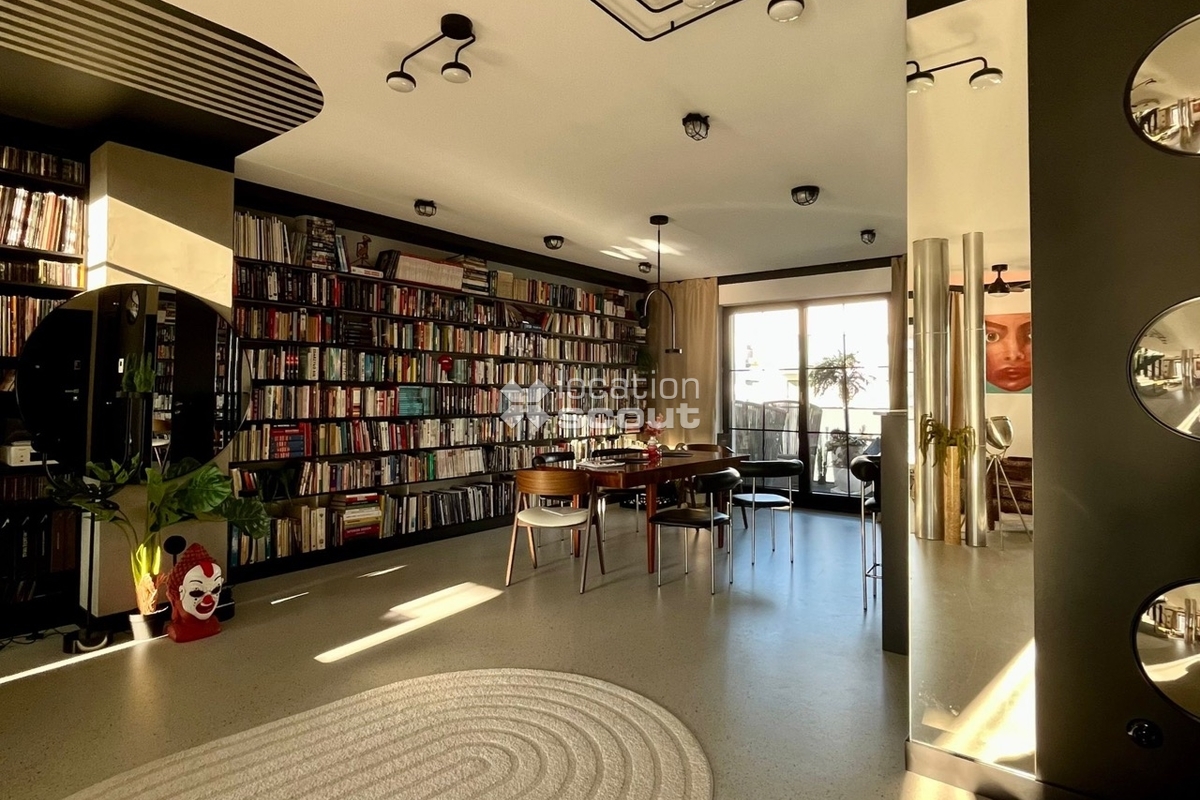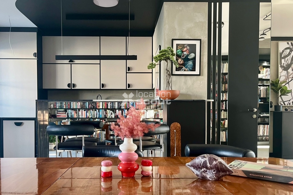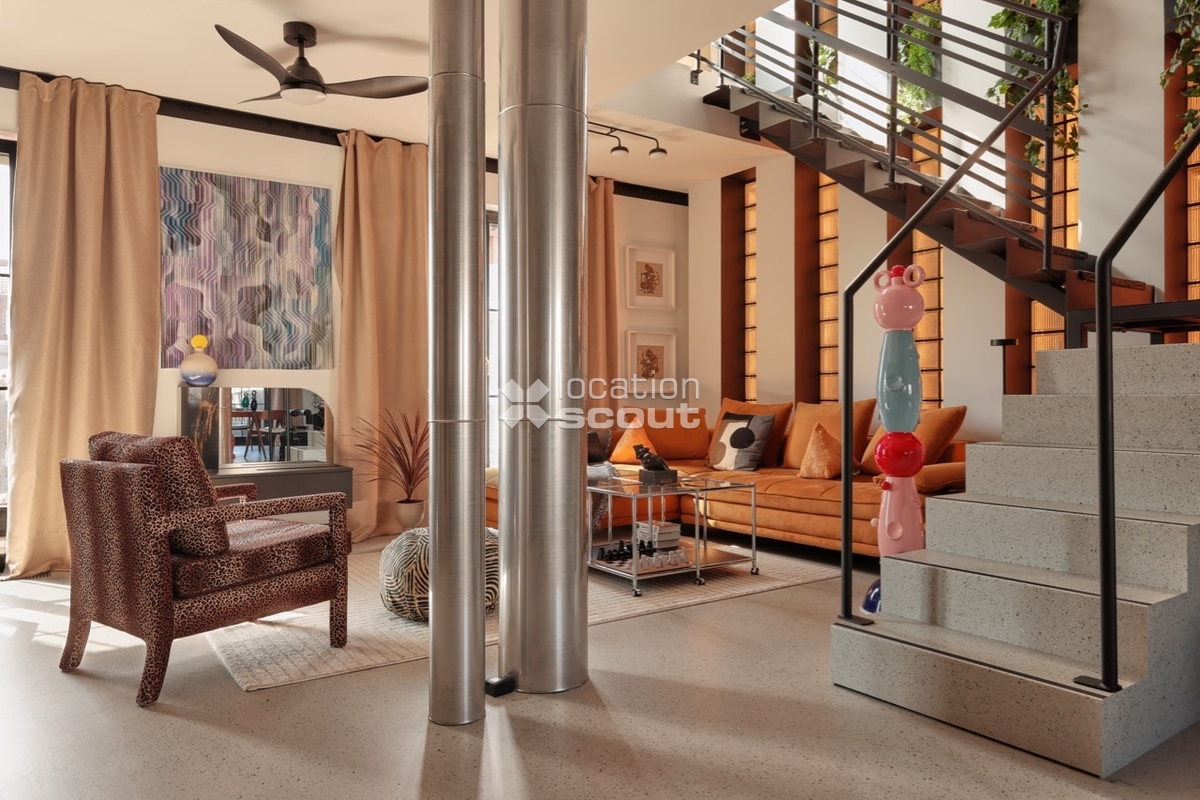 Artystyczny, dwupoziomowy apartament pełen oryginalnych mebli i dekoracji. Widok na miasto. Fot. Gracjan Donarski.
