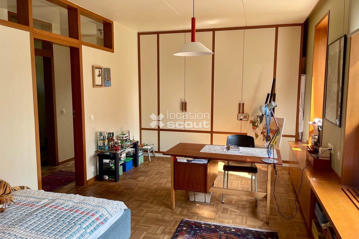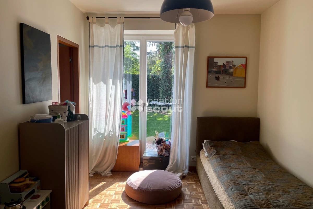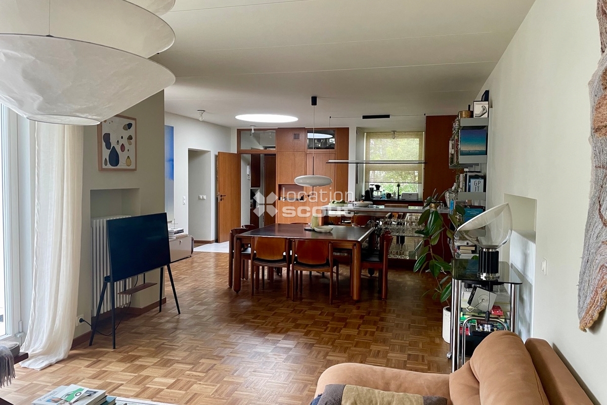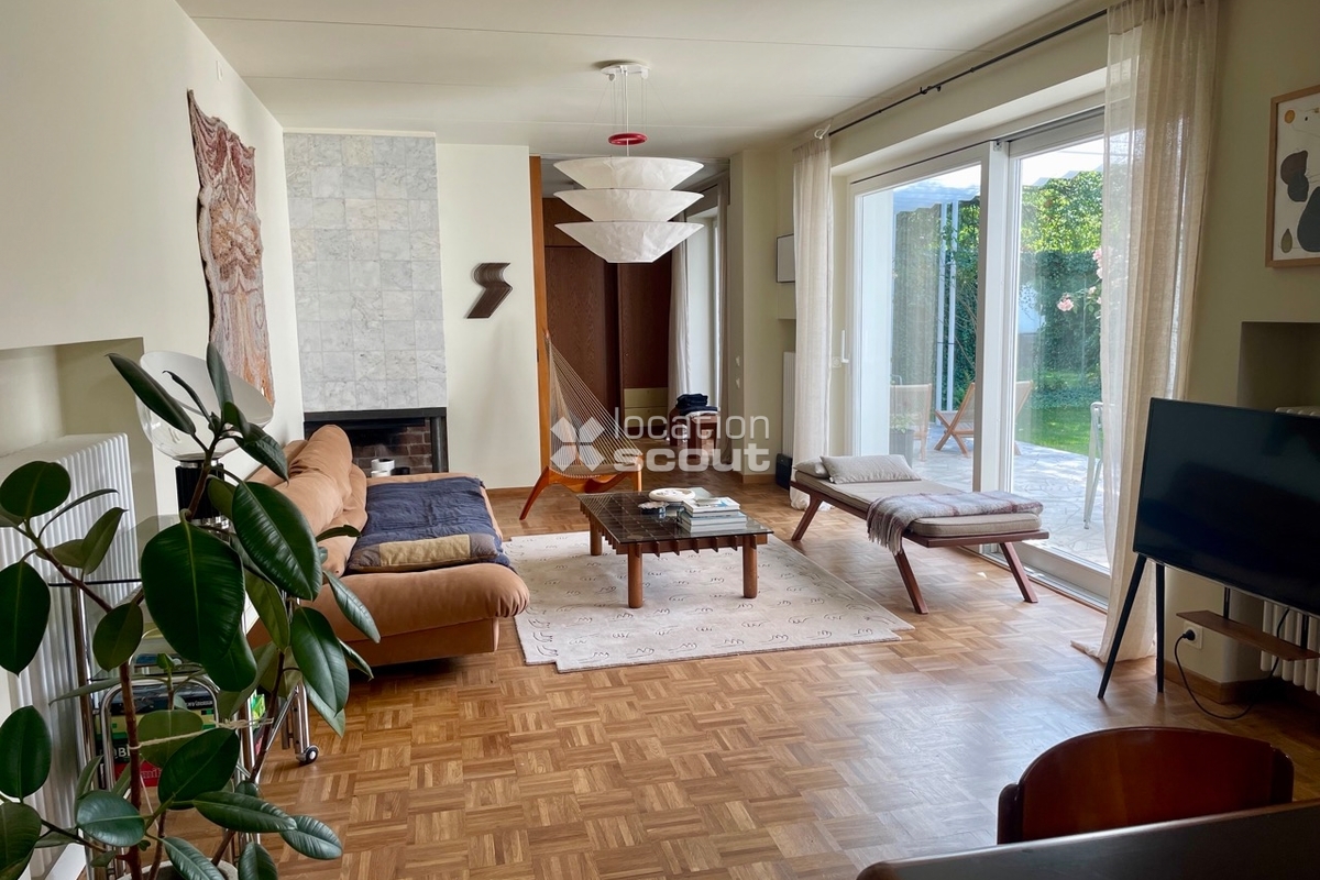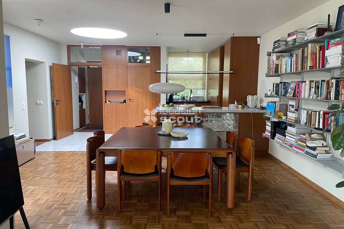 Parterowy dom w zabudowie szeregowej w stylu mid-century modern.