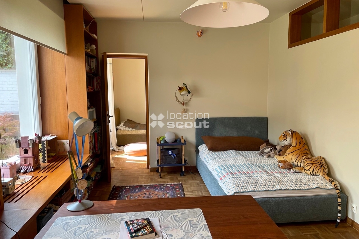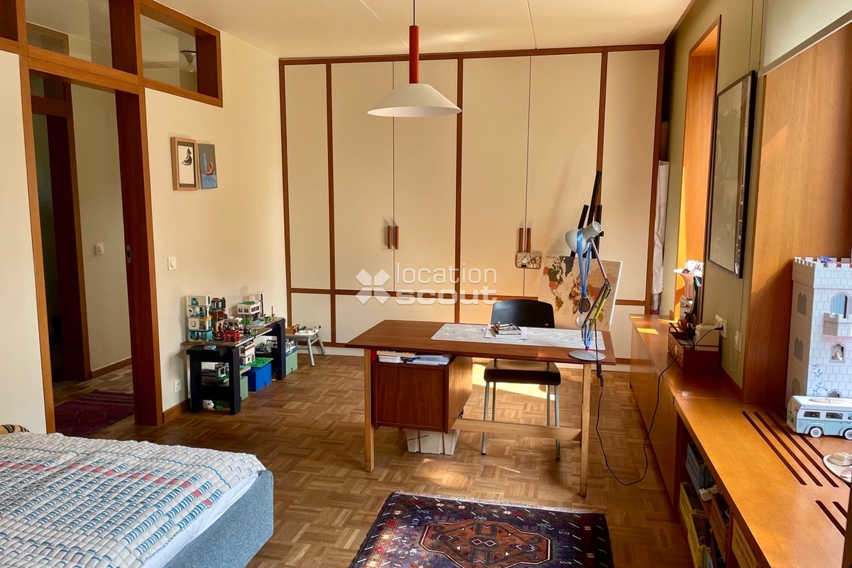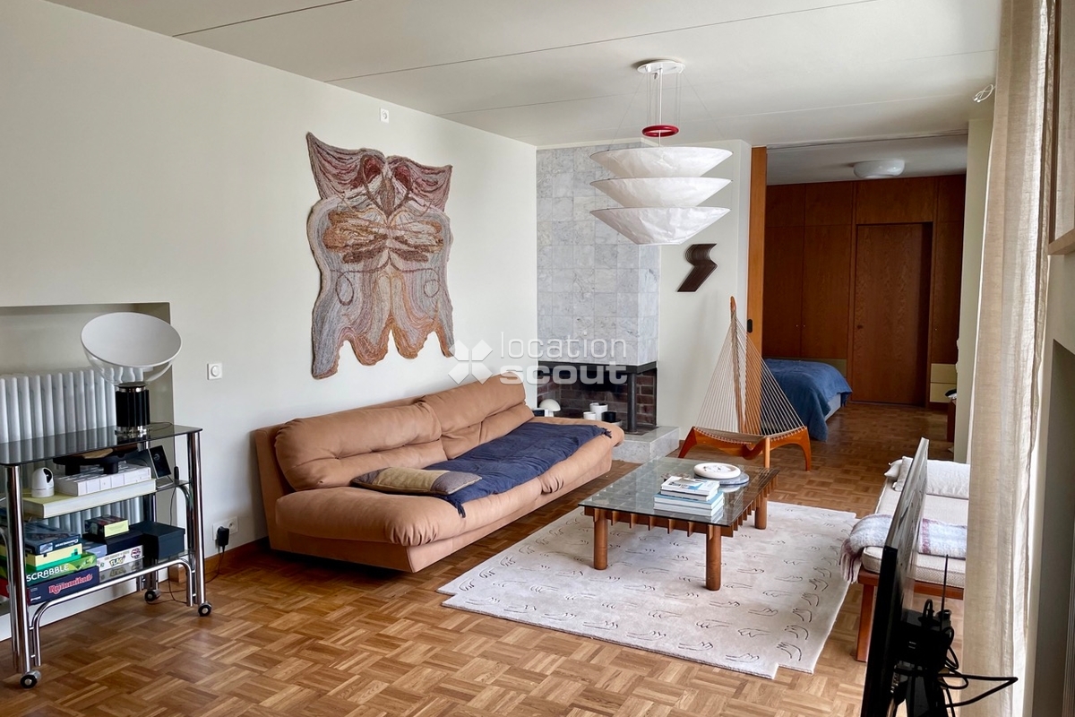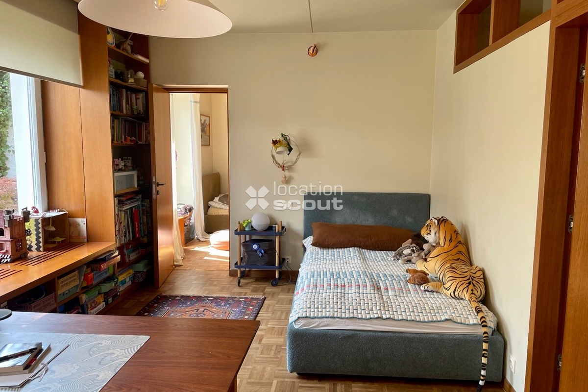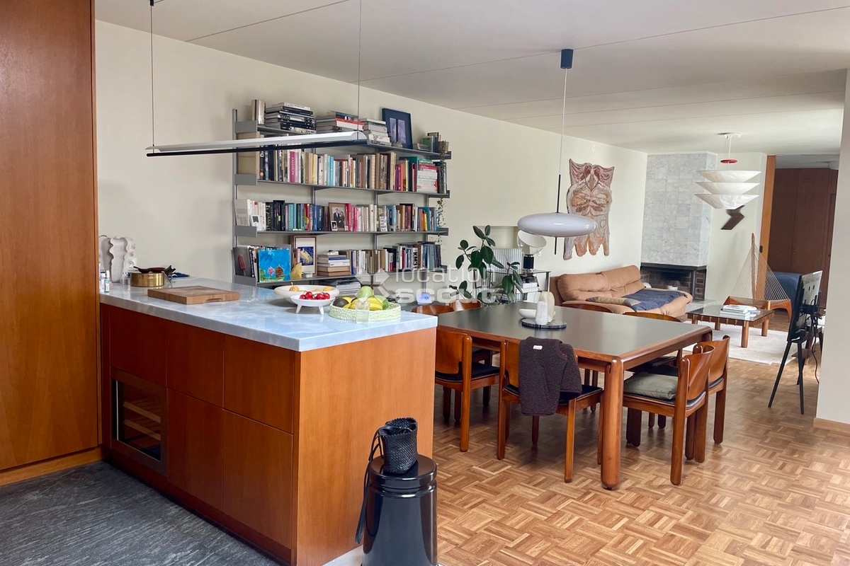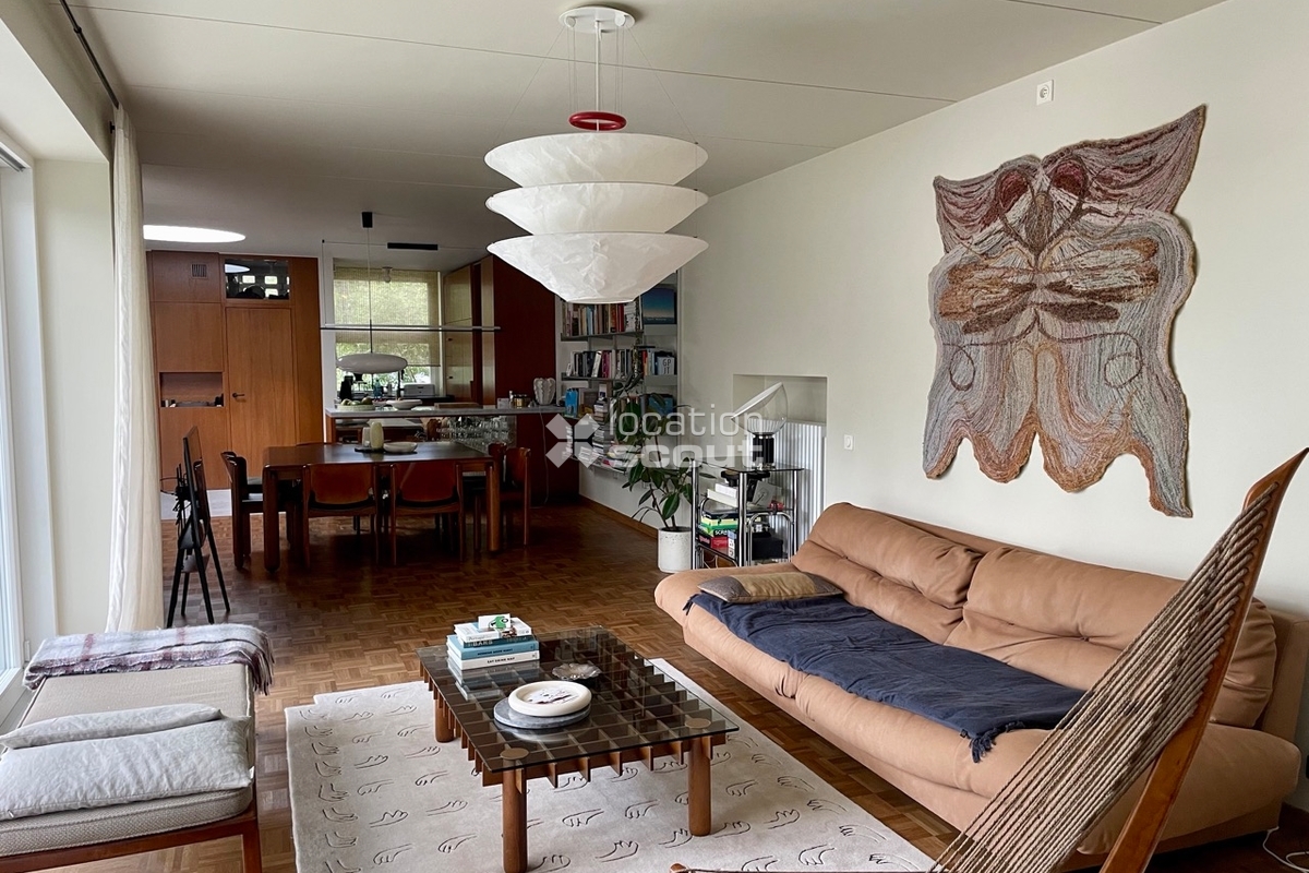 Parterowy dom w zabudowie szeregowej w stylu mid-century modern.