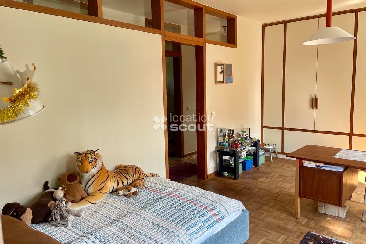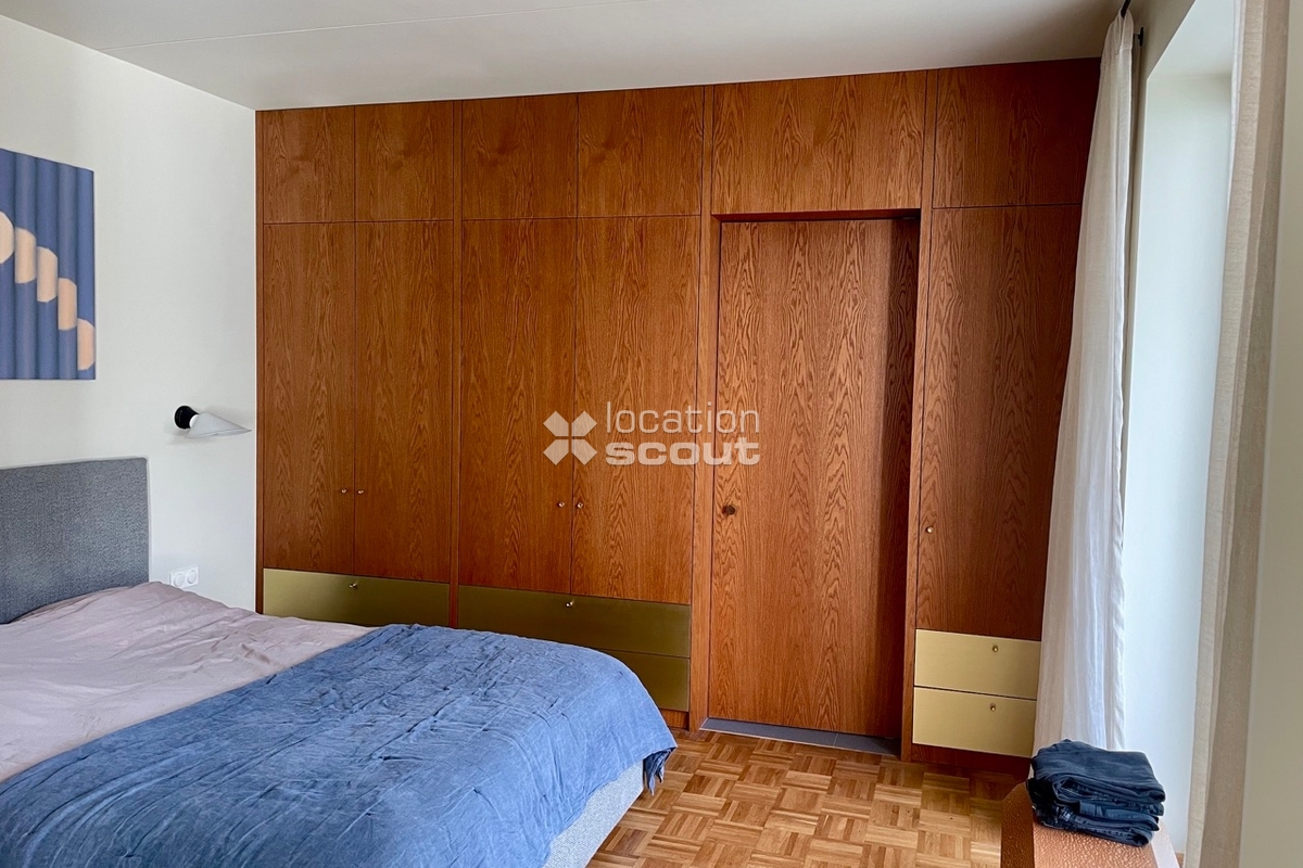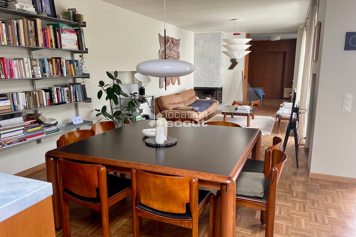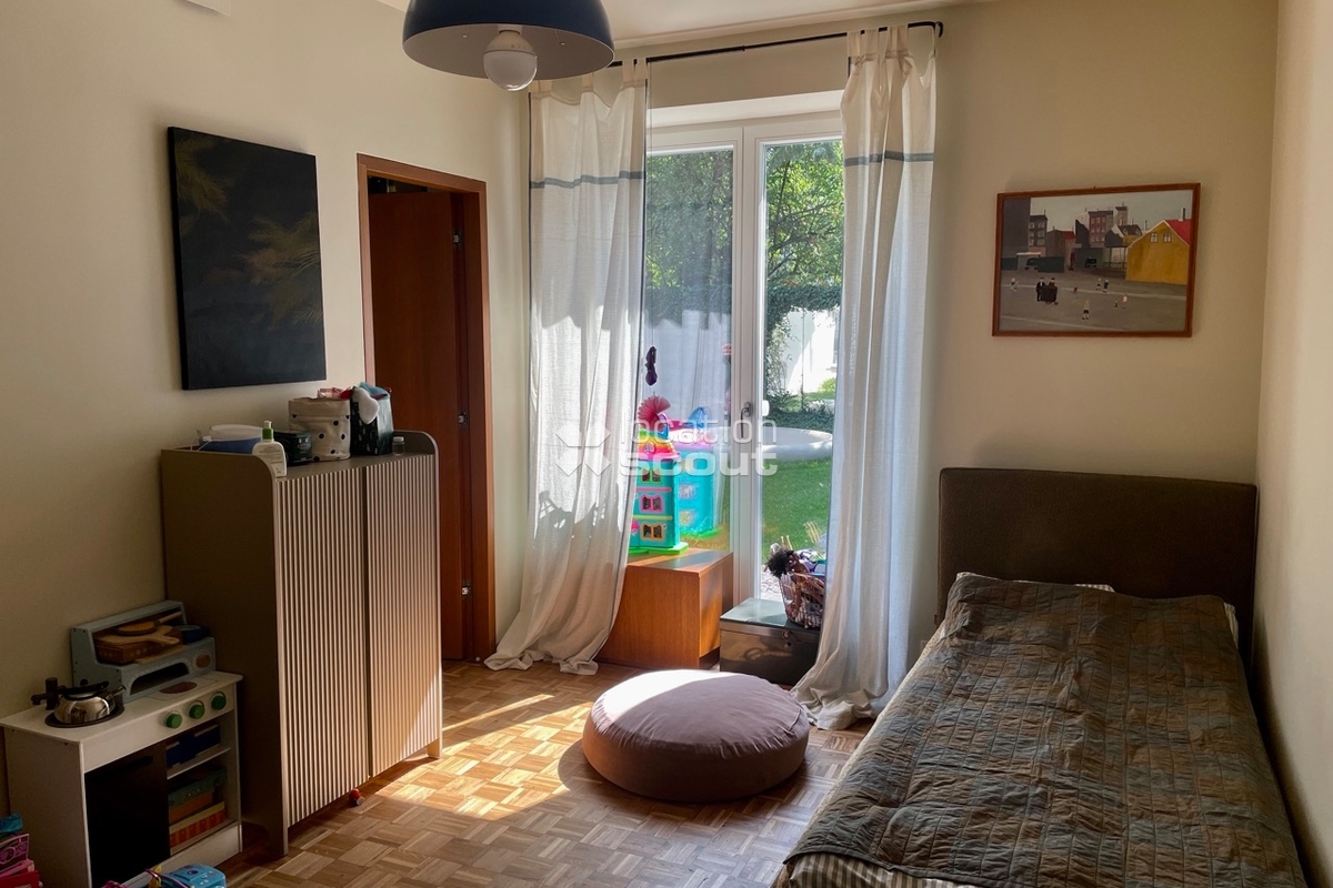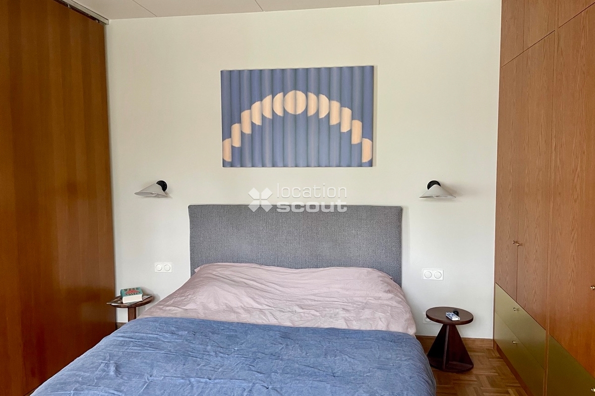 Parterowy dom w zabudowie szeregowej w stylu mid-century modern.