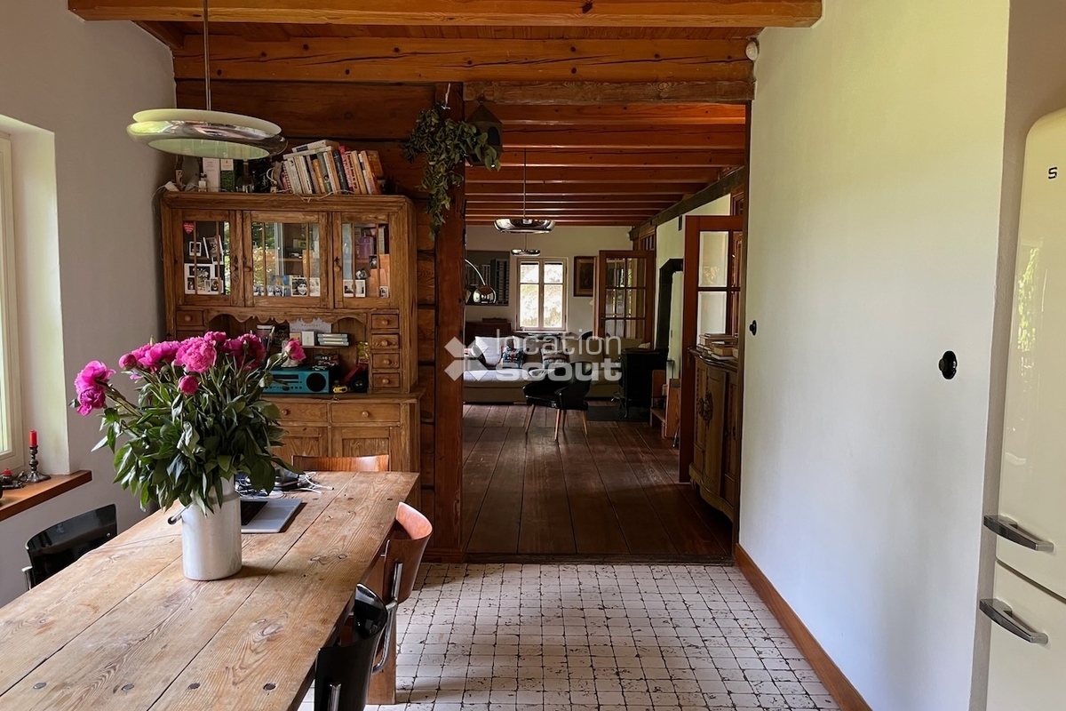 Rustykalny, przytulny dom na wsi. Pole.
